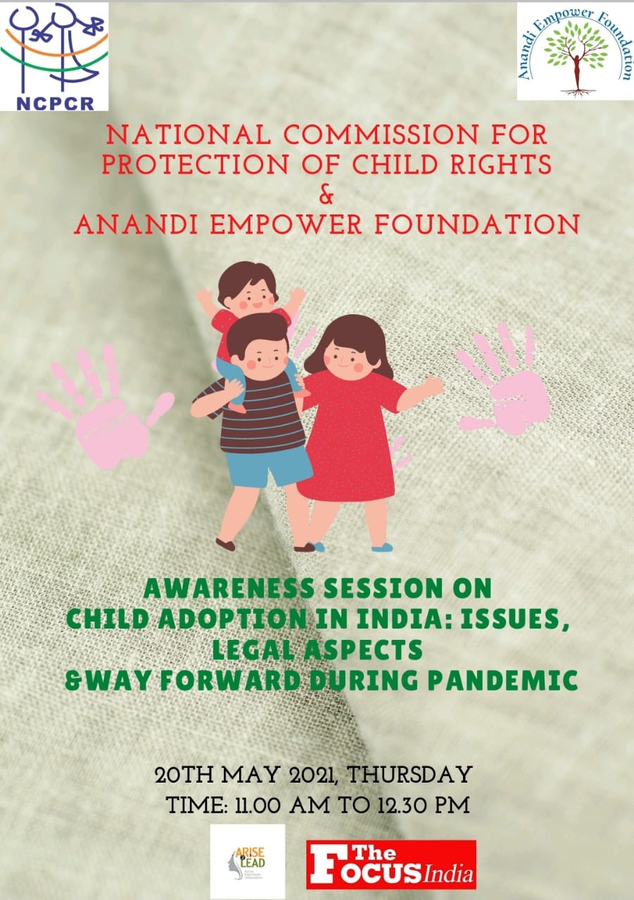 Awareness Session on Child Adoption in India, organised virtually on 20th May, 2021.